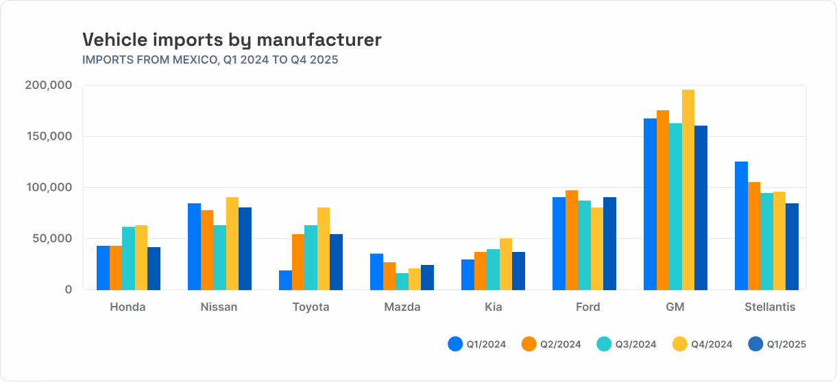 Vehicle imports from Mexico, Q1 2024 to Q1 2025