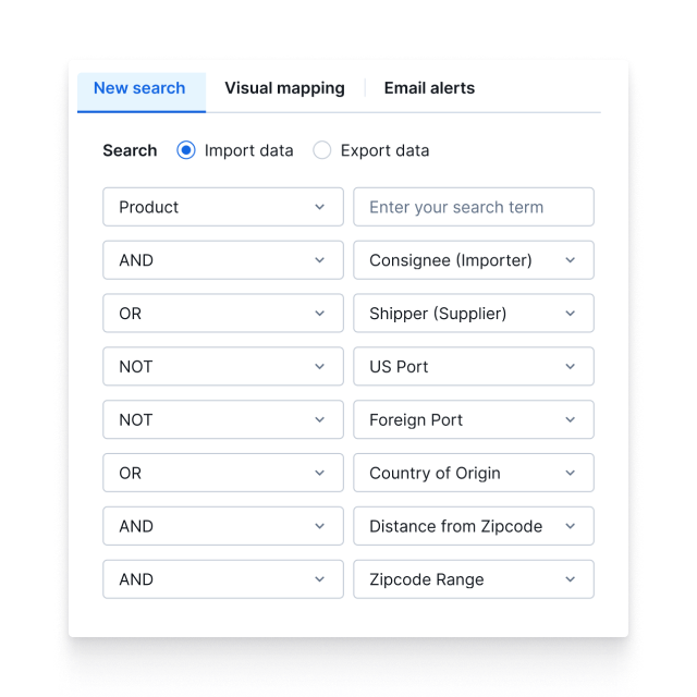 ImportGenius agrega datos de envíos globales y permite una búsqueda flexible y con múltiples filtros para rastrear contenedores, embarcaciones y actividades comerciales a través de las fronteras.