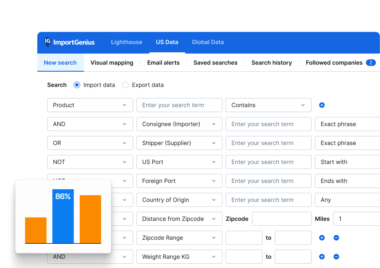 Los equipos de ventas pasan horas saltando de una herramienta a otra solo para crear una lista de clientes potenciales. Con ImportGenius, puede omitir el raspado y la búsqueda.
